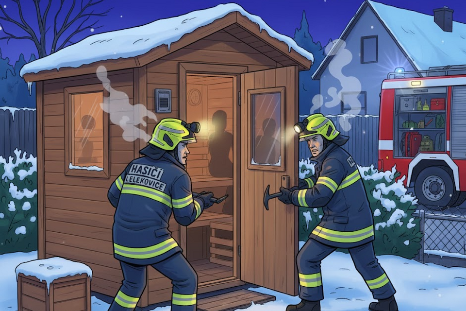 Vyjeli jsme k záchraně osob uvězněných v sauně v České